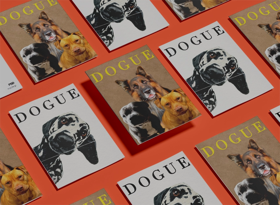 Ces couvertures sont un clin d’oeil au célèbre magazine Vogue, remplacant le “V” par un “D” pour représenter des chiens. C’est un détour de l’univers de la mode pour rendre hommage aux amis les plus fidèles de l’Homme !